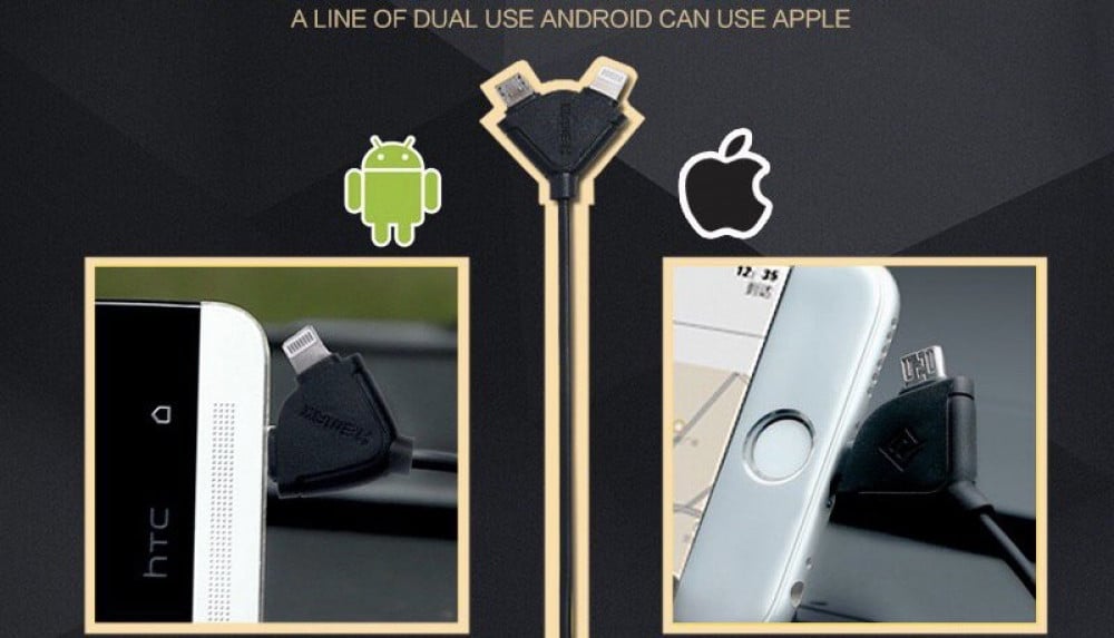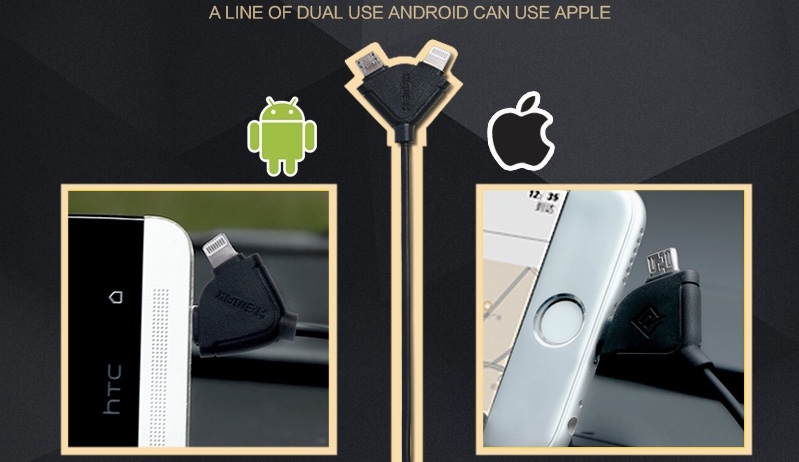 -يأتي مع واير ذو مخرجين، للأيفون والأندرويد (micro usb)